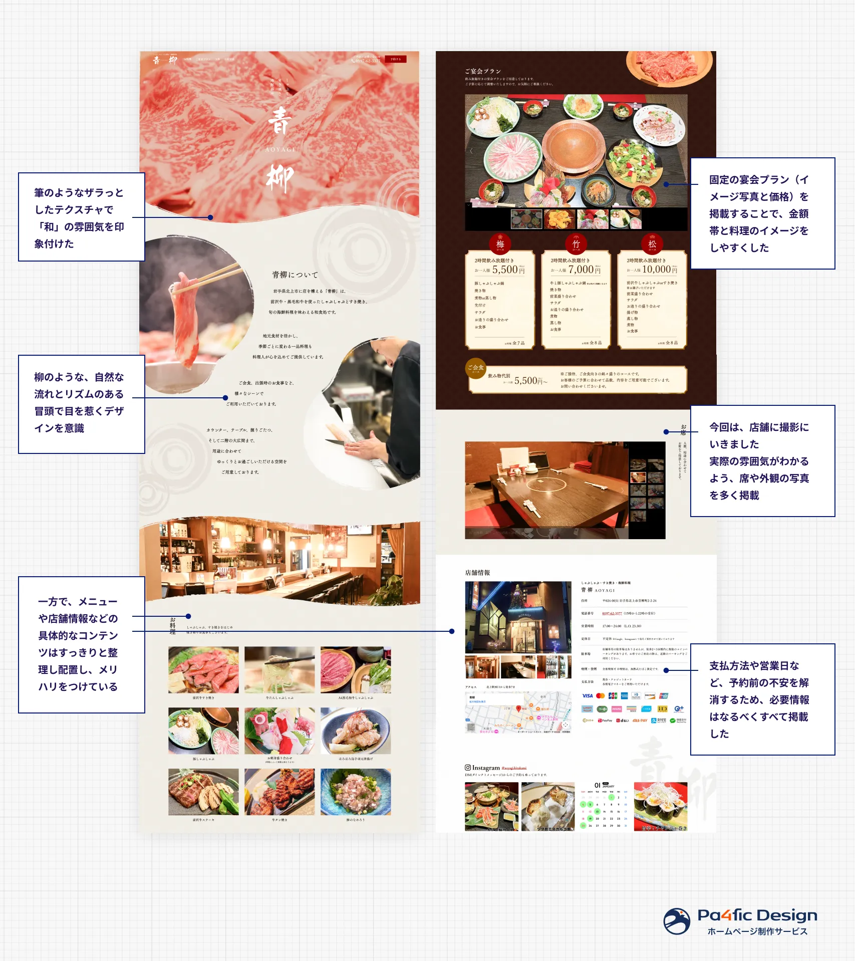 岩手県北上市しゃぶしゃぶ居酒屋「青柳」様のWEBサイトを制作しました。